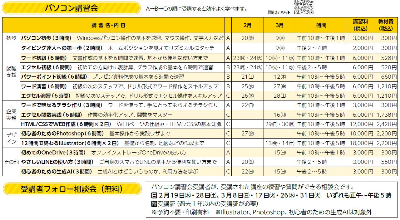 ※講習は備え付けのパソコンをお使いいただきます。LINE講習はスマホをご持参ください。