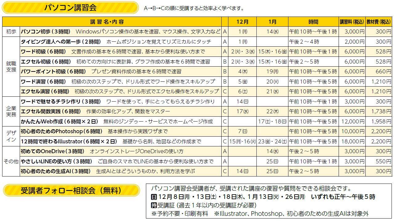 ※講習は備え付けのパソコンをお使いいただきます。LINE講習はスマホをご持参ください。